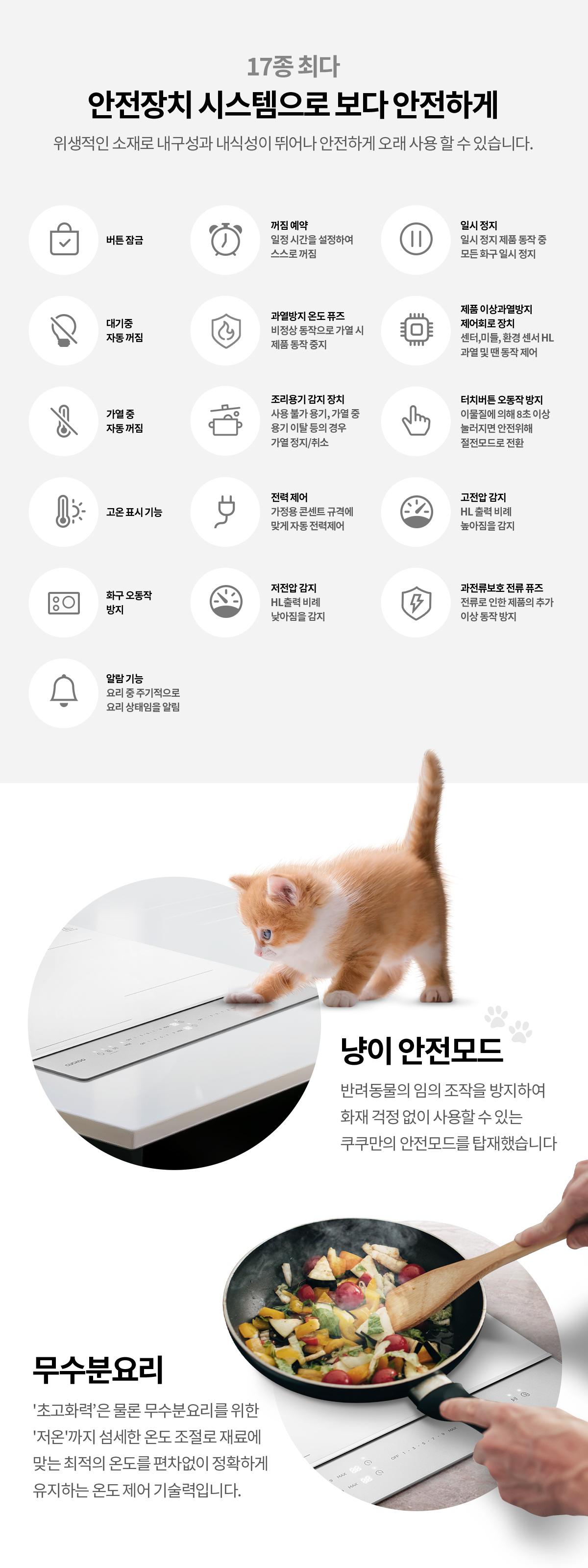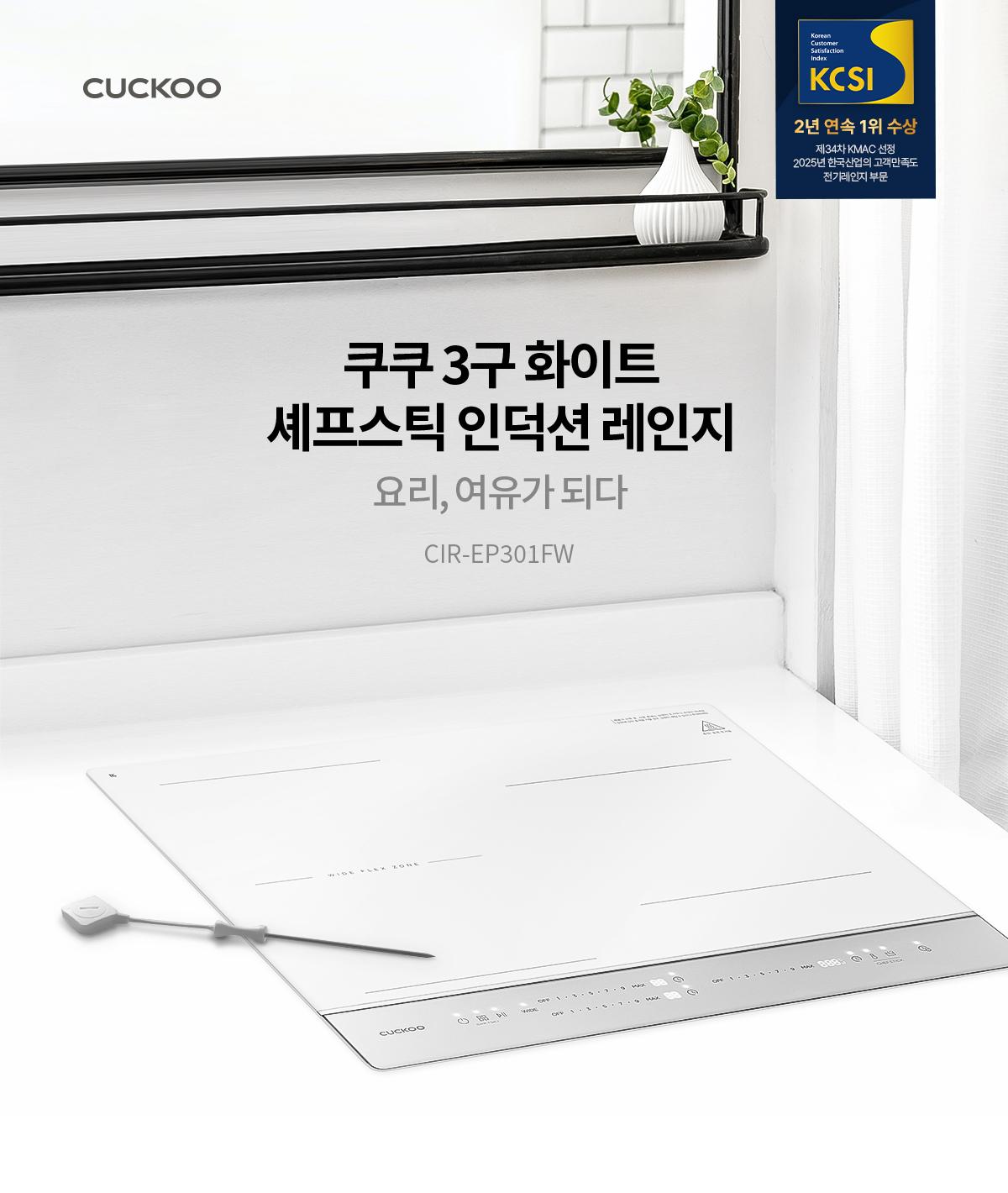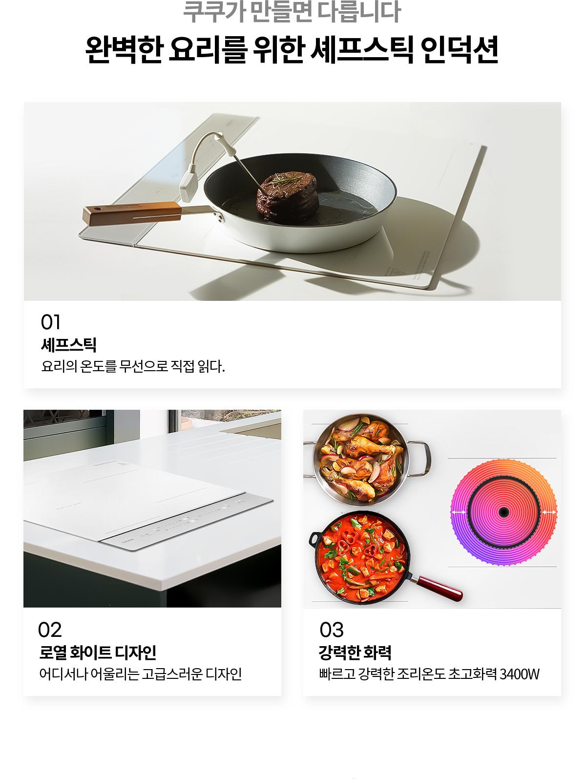 쿠쿠 미식 컬렉션 셰프스틱 3구 화이트 인덕션레인지(메탈 실버)