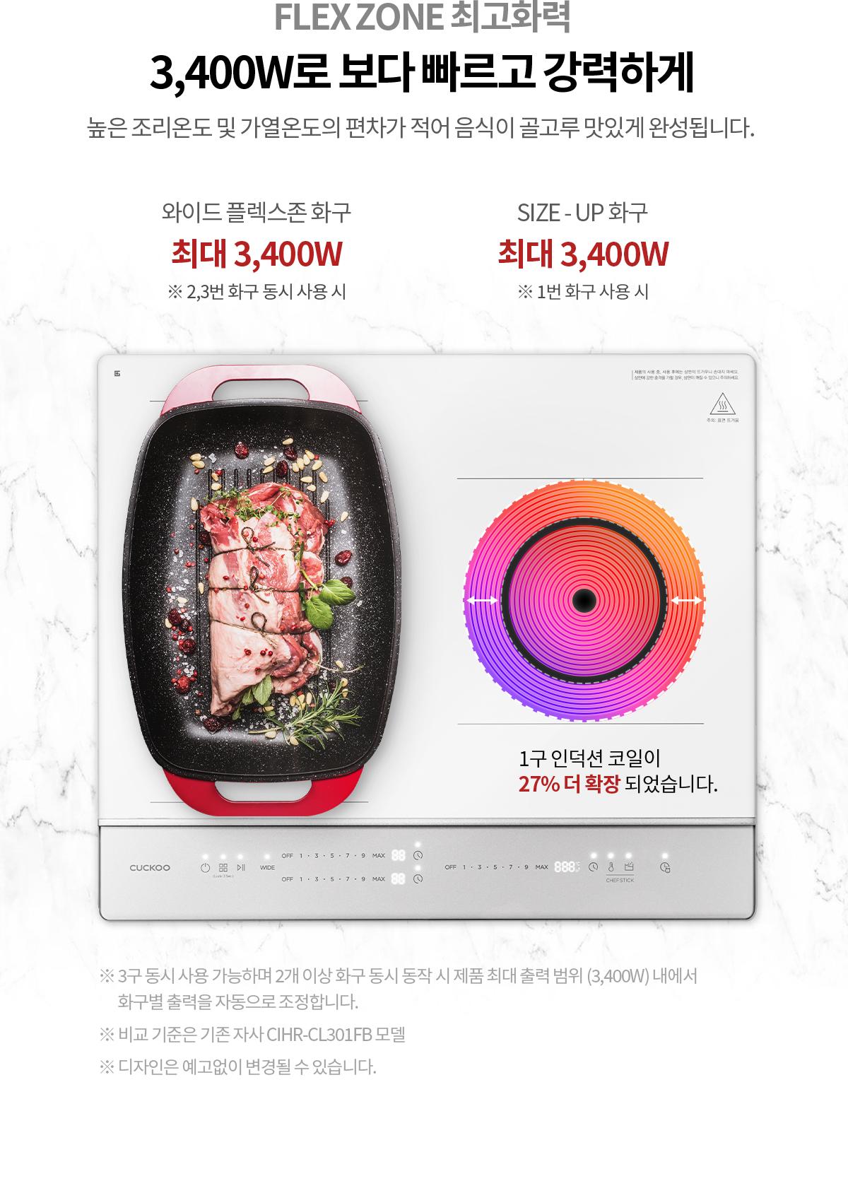 온도감지 셰프스틱 ∙ 세라믹 글라스 ∙ 초고화력 3400W ∙ 와이드플렉스 존