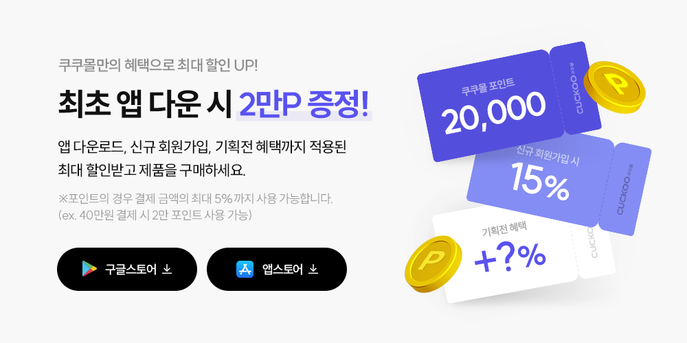 | A/S 책임자와 전화번호 | 쿠쿠 A/S 고객센터: 1588-8899 | 품질보증기준 | 공정위원회 고시(소비자분쟁해결기준)에 의거하여 보상해 드립니다. |