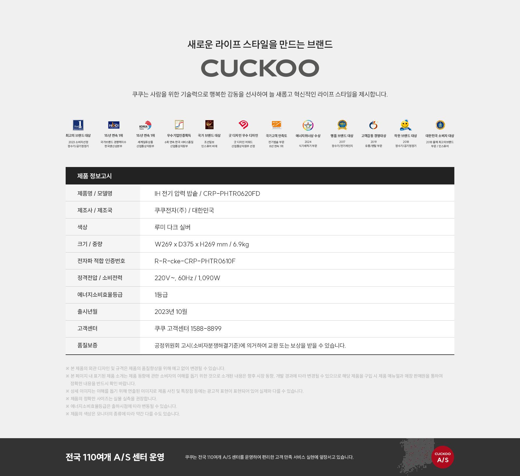 (특가판매)쿠쿠 미식 컬렉션 마스터셰프 사일런스 프로(6인용)