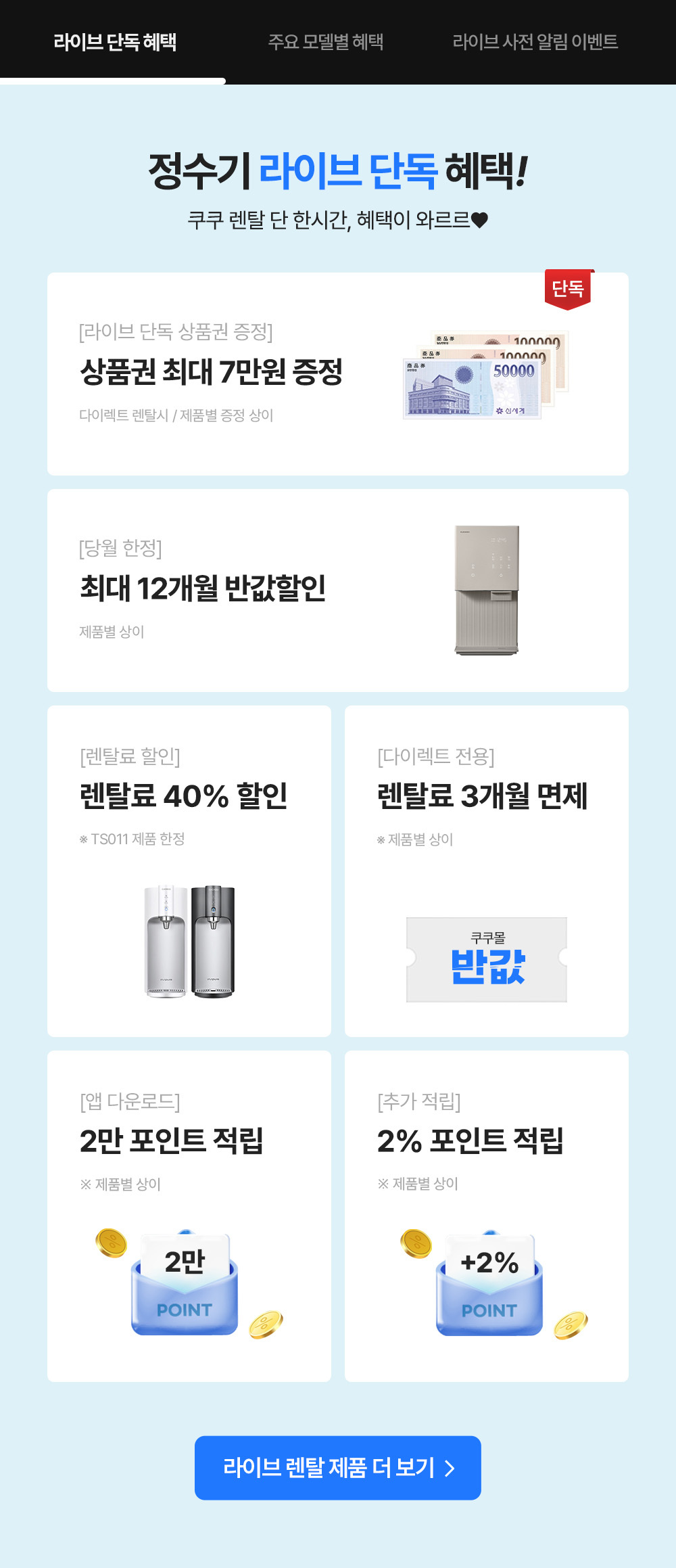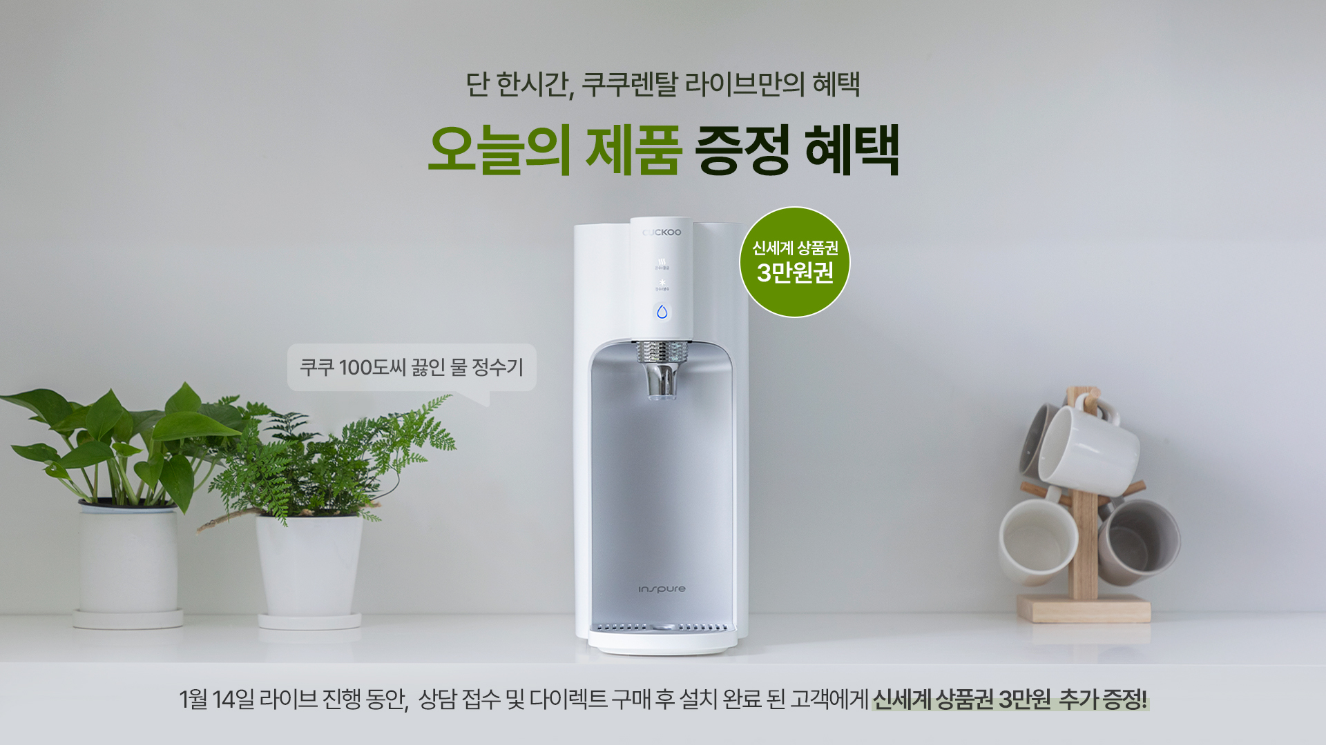 [쿠쿠렌탈 라이브] 갓성비 정수기 끝판왕! 쿠쿠 렌탈 최대 12개월 무료 혜택