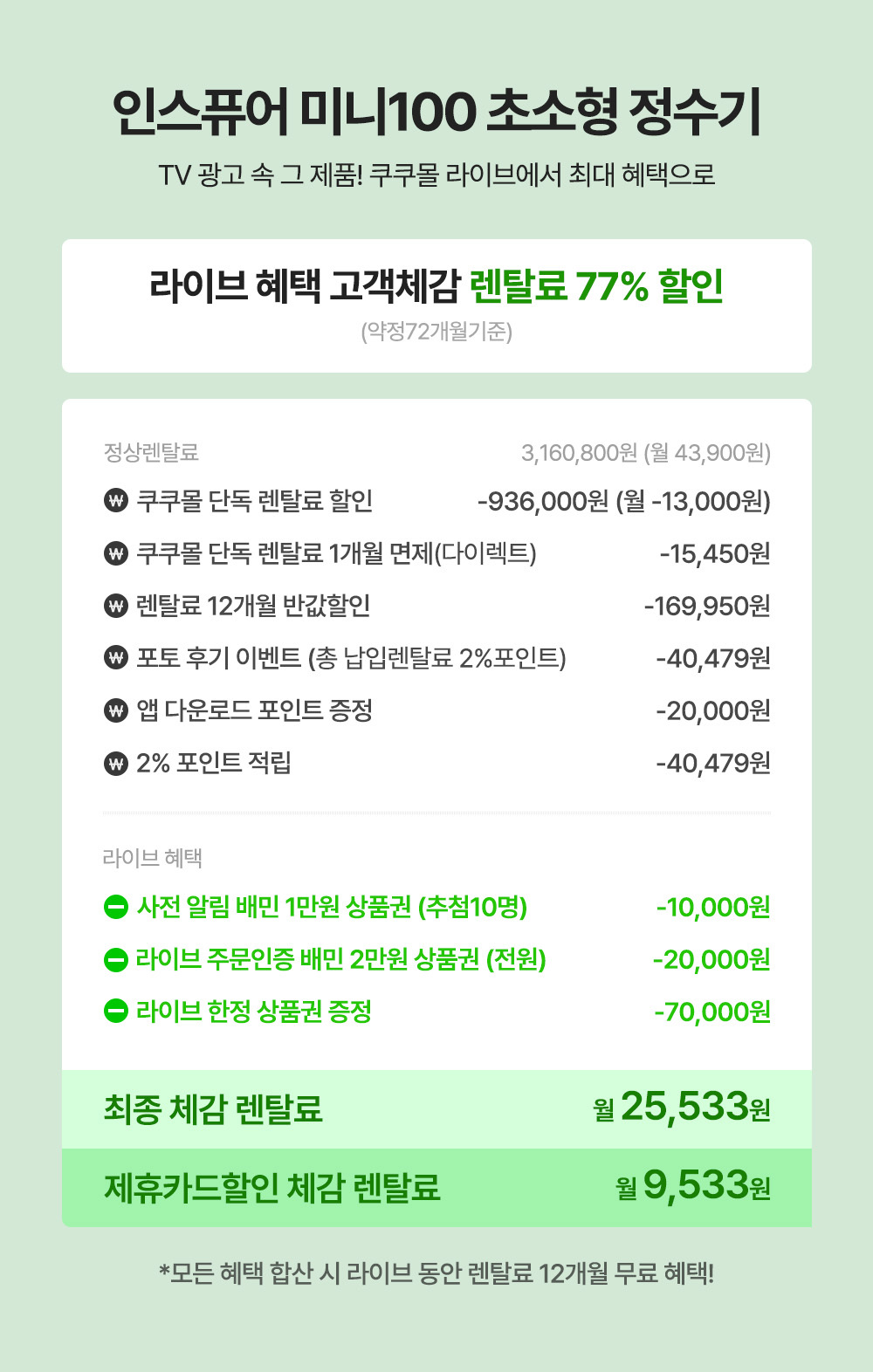 [렌탈LIVE] 쿠쿠 갓성비정수기 라이브! 렌탈료 최대 12개월 무료 혜택