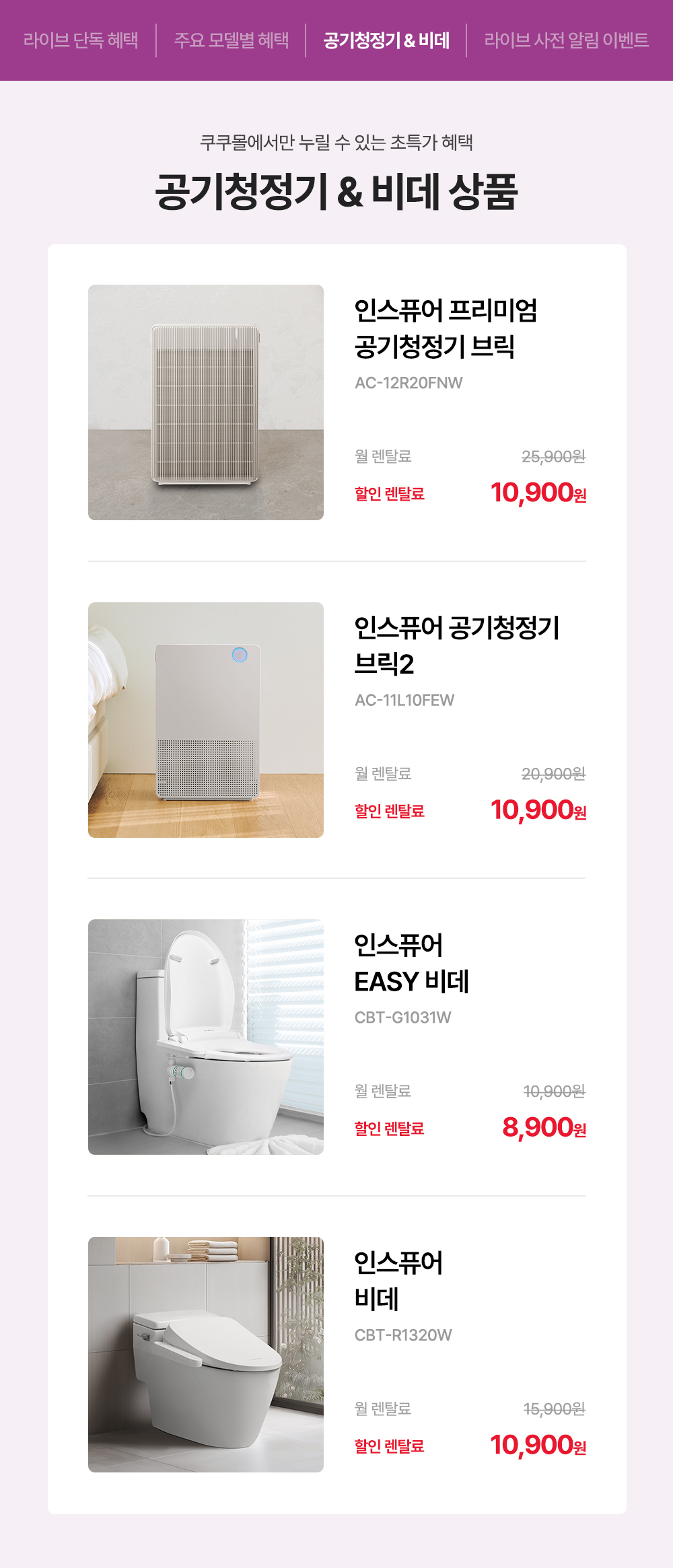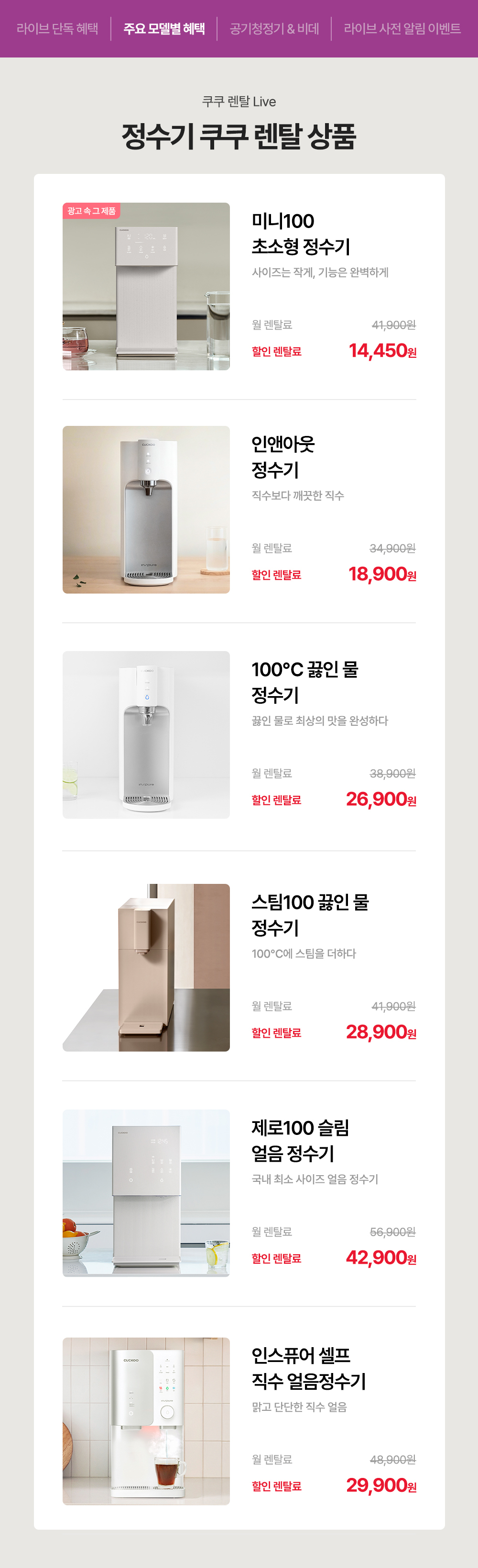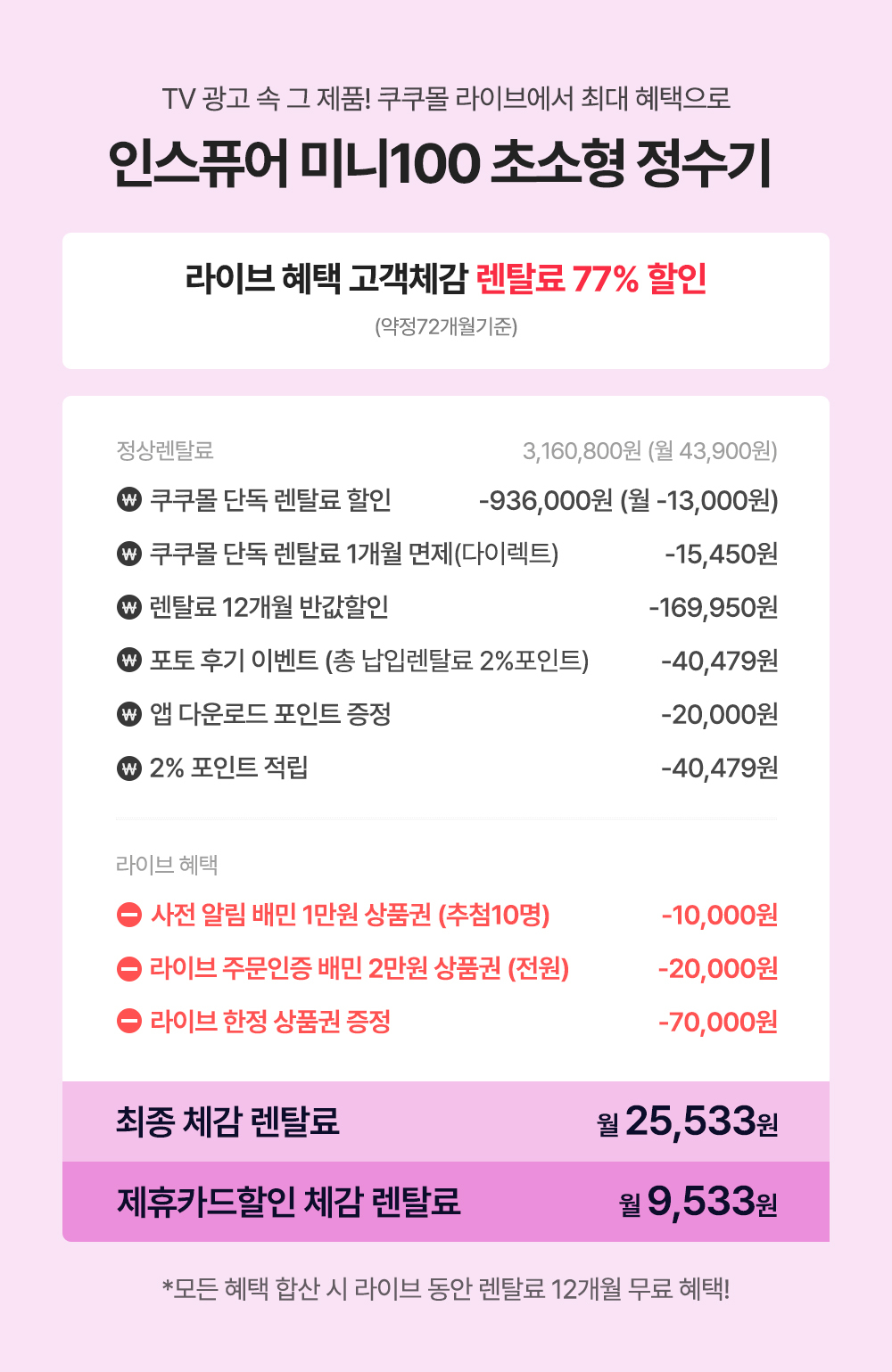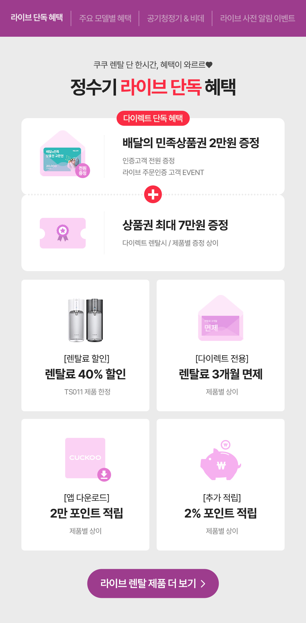 [렌탈LIVE] 쿠쿠몰 단독 정수기 LIVE! 최대 렌탈료 12개월 무료 혜택!