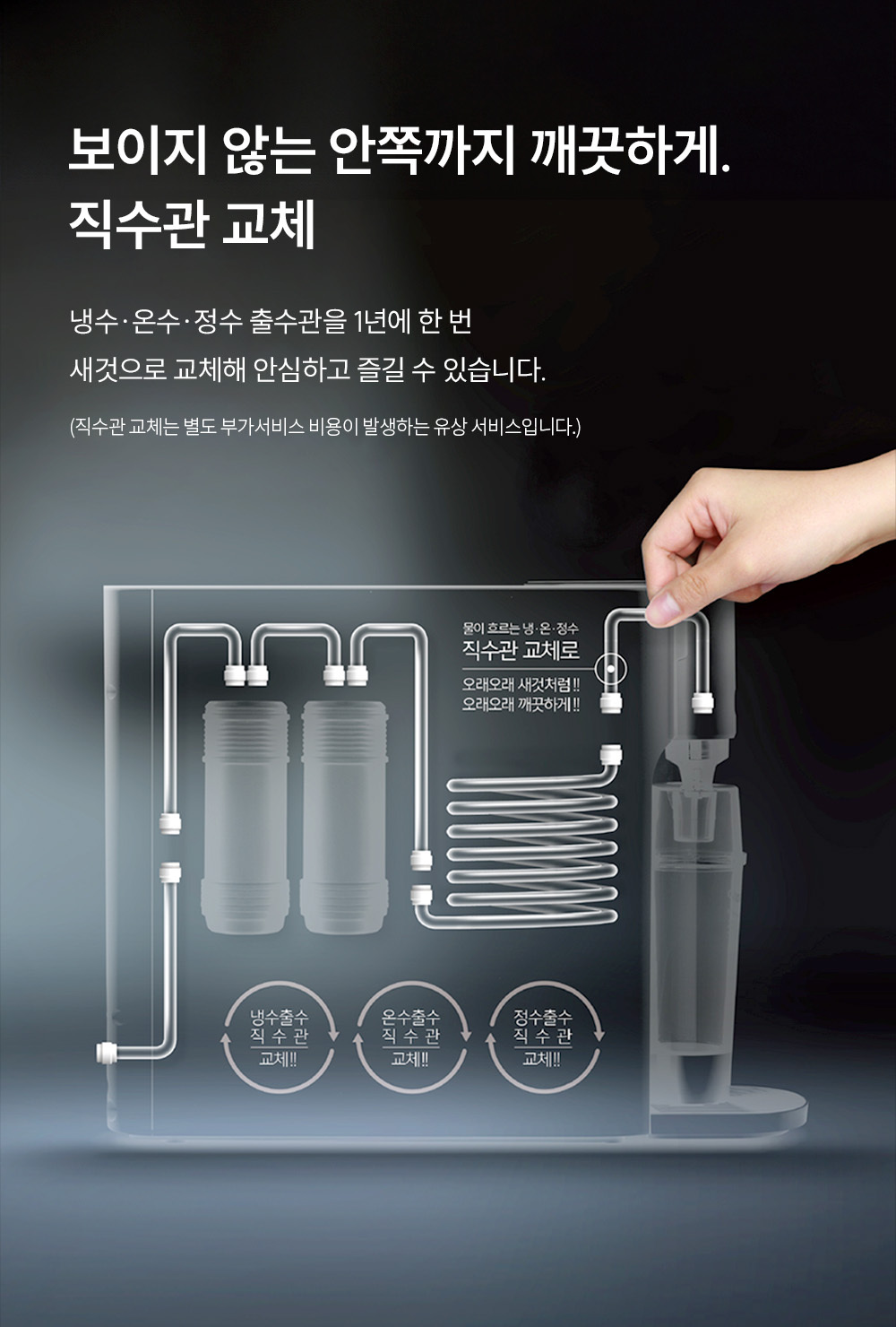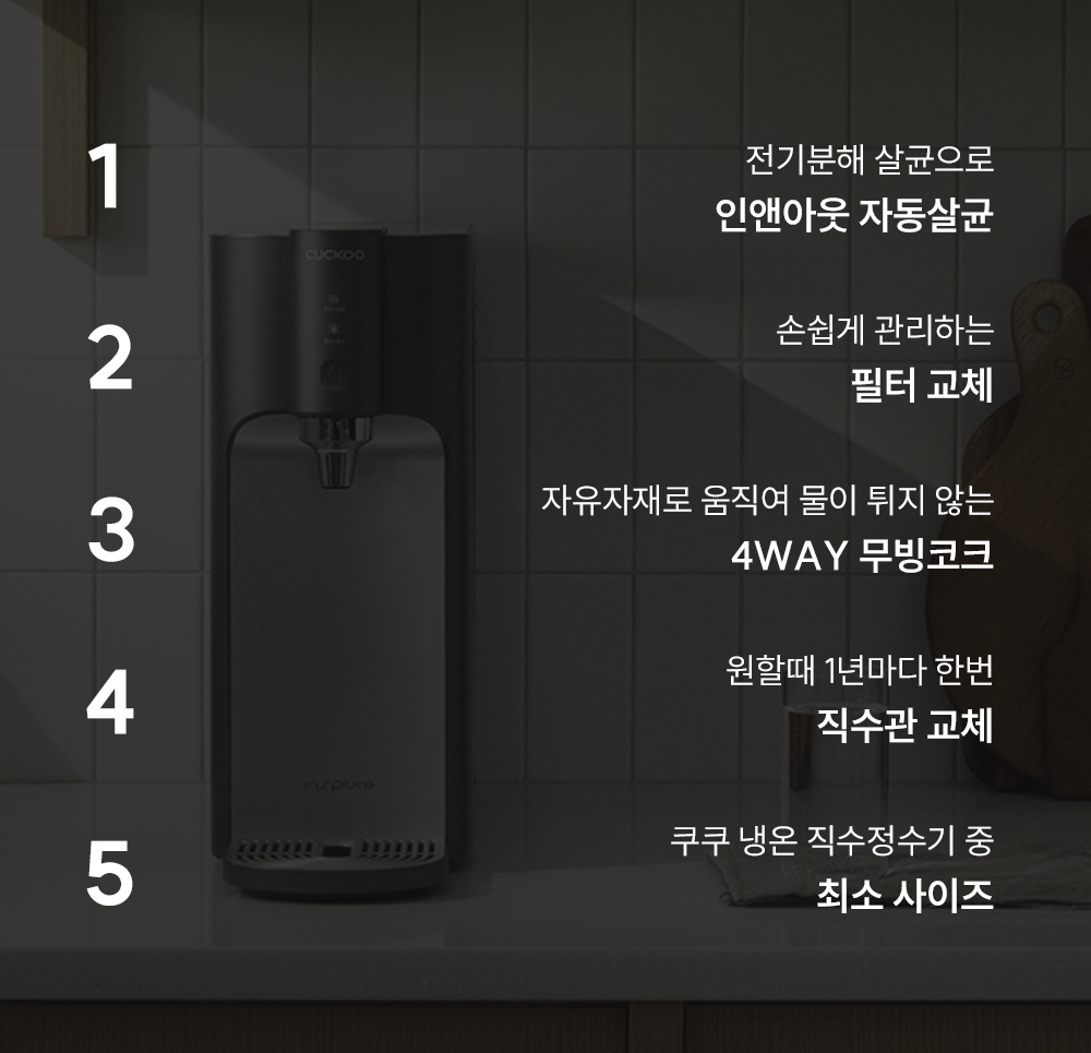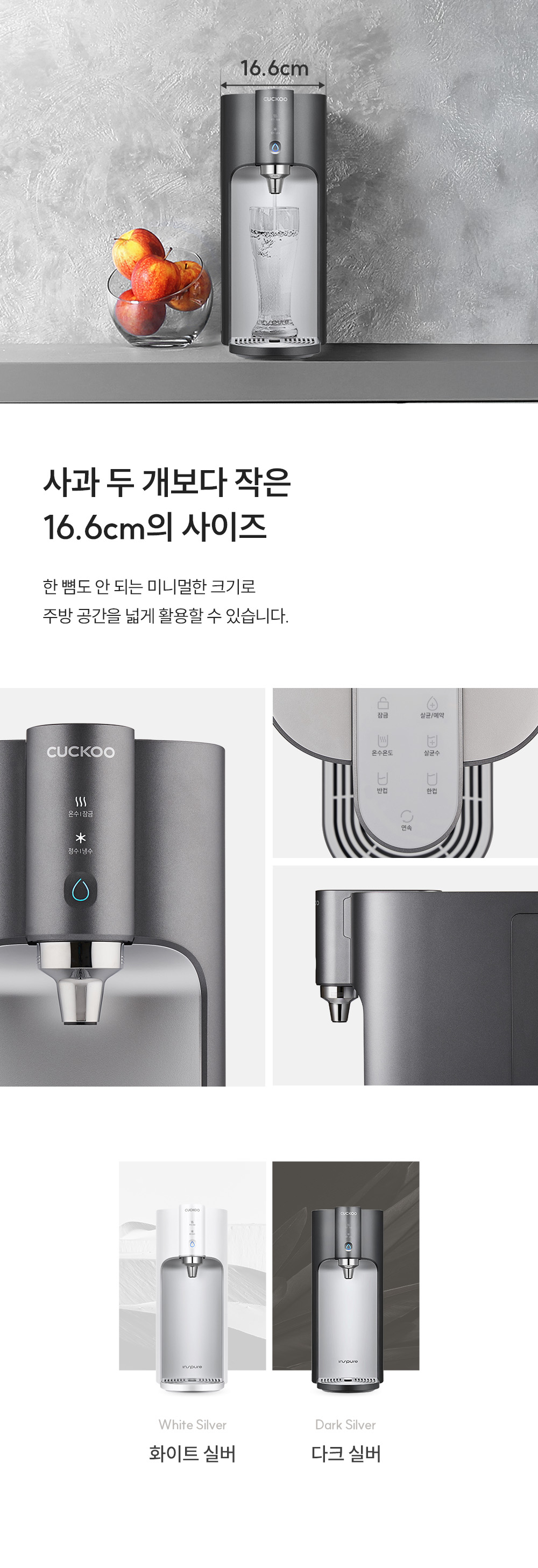 생수주문해서먹다가쓰레기도많이나오고~너무귀찮아서구매했어요~주방이좁아서디자인에신경쓸수밖에없었는데~슬림하게잘빠져서~공간을많이차지하지않아서좋습니다^^ 100도시까지끓인물이나오니~전기포트또한사용하지않아좋았어요~ 매일아침커피한잔으로시작하는저에겐이게완전요물입니다^^