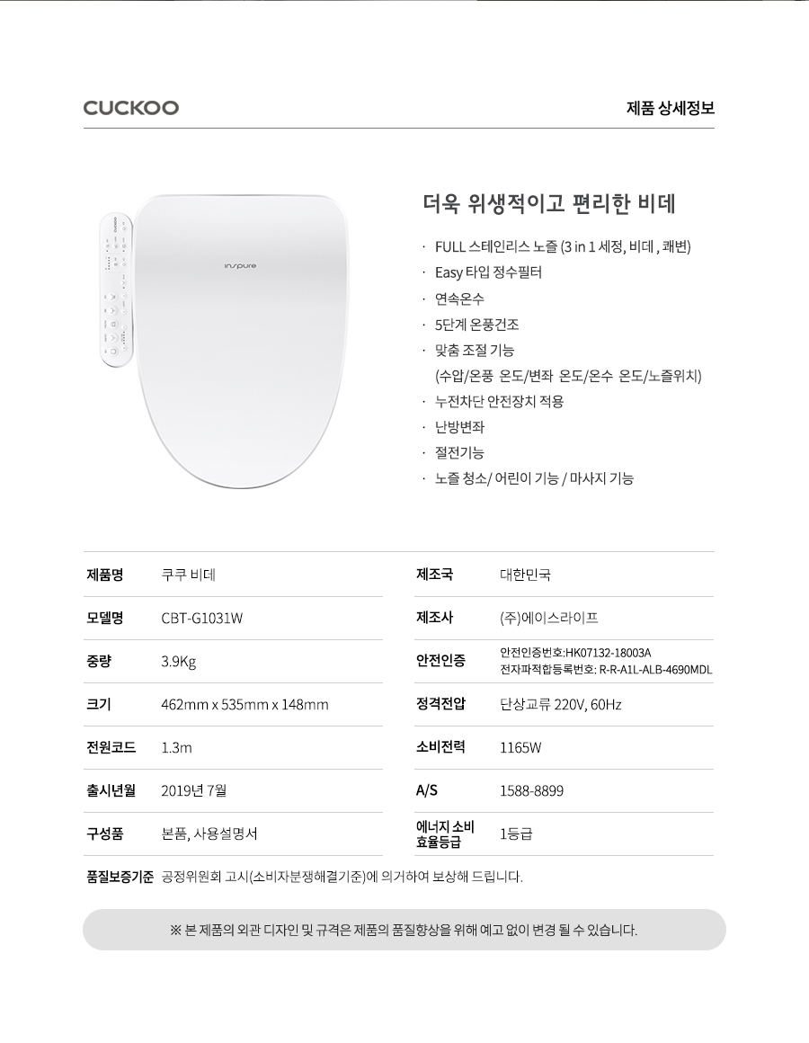 처음 비데 써보는 사람도 부담 없이 추천할 만큼 기능·편의성 모두 합격입니다 :) -