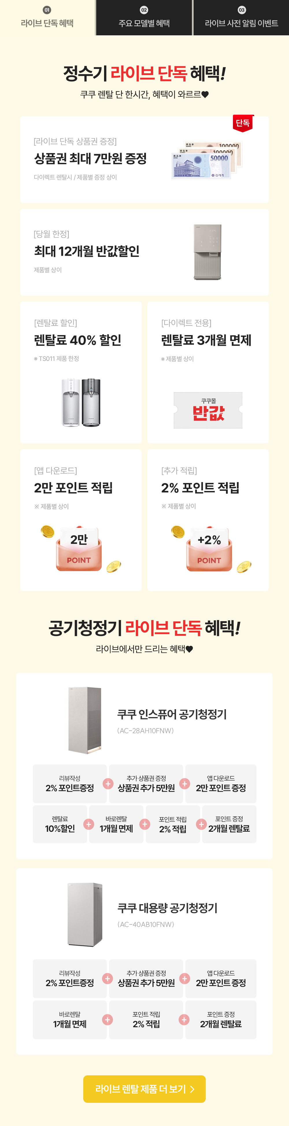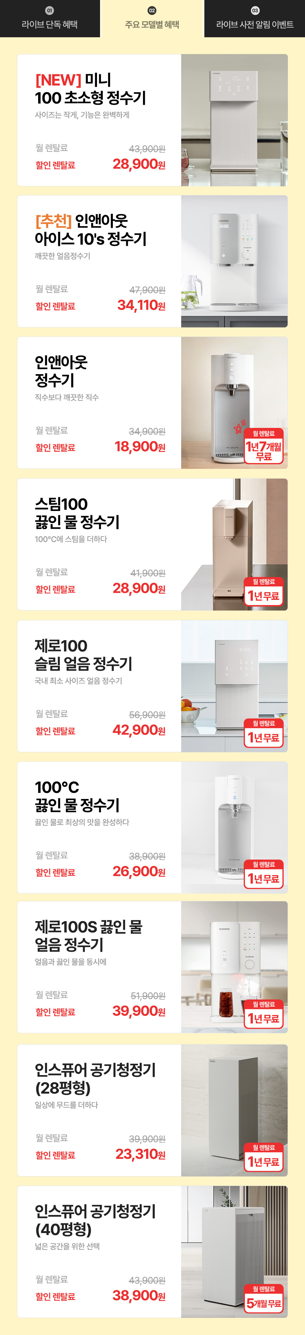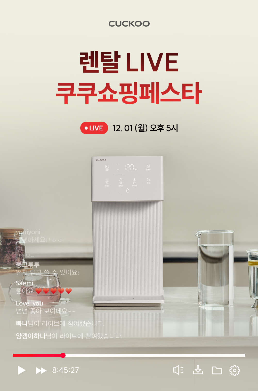 [쿠쇼페 렌탈 라이브/12월 1일 (월) 오후 5시] ★7만원 상품권★ 정수기 다이렉트 렌탈 3개월 면제!