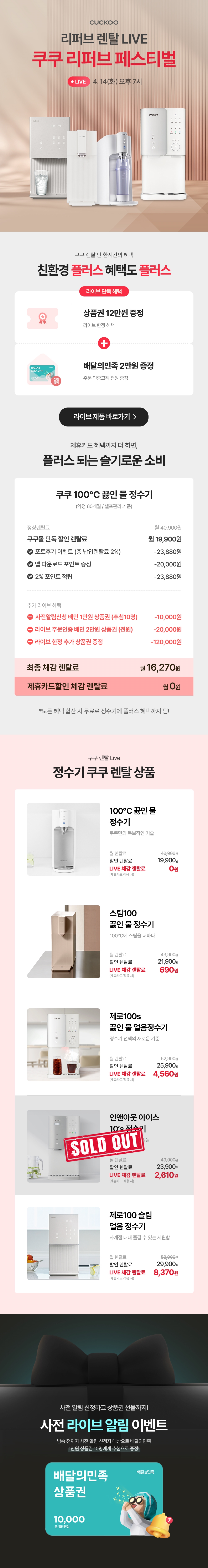[렌탈LIVE] 쿠쿠 리퍼브 정수기 렌탈 페스티벌