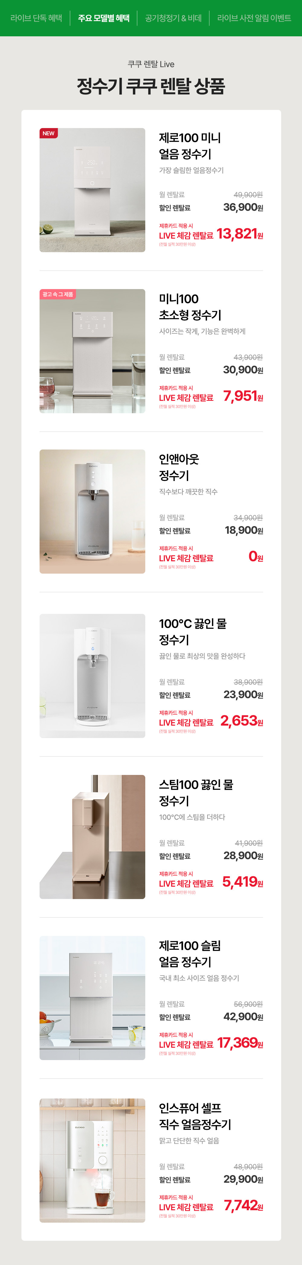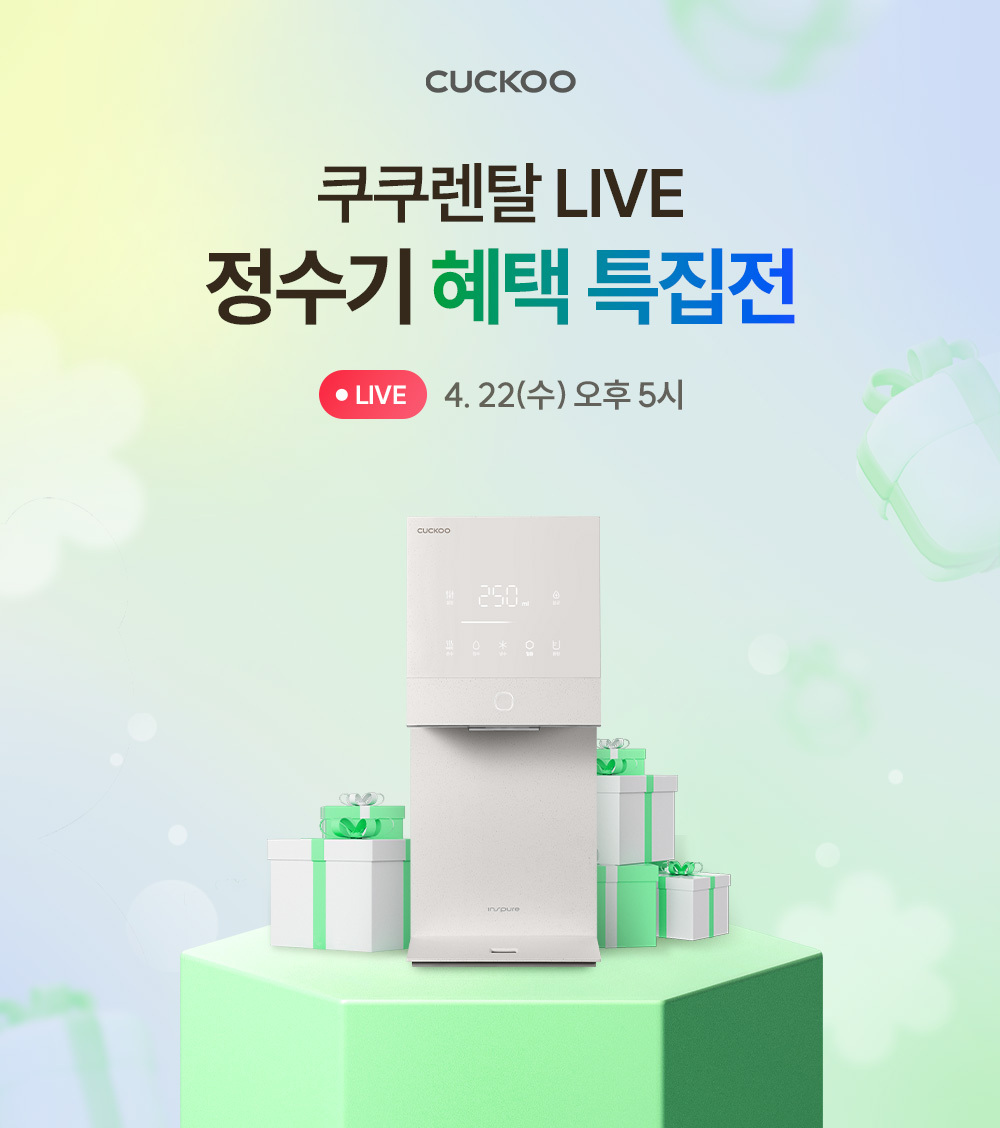 [렌탈LIVE/4월22일(수)오후5시] 쿠쿠몰에서만 만날 수 있는 최대 혜택 정수기 대전